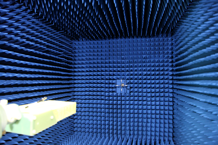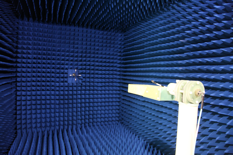 全電波暗室減小了外界電磁波信號(hào)對測試信號(hào)的干擾,同時(shí)電磁波吸波材料可以減小由于墻壁和天花板的反射對測試結(jié)果造成的多徑效應(yīng)影響, 適用于發(fā)射、靈敏度和抗擾度實(shí)驗(yàn)。在全電波暗室中可以模擬自由空間的情況。同其它兩種測試場地相比,全電波暗室的地面、天花板和墻壁反 射小、受外界環(huán)境干擾小,并且不受外界天氣的影響。