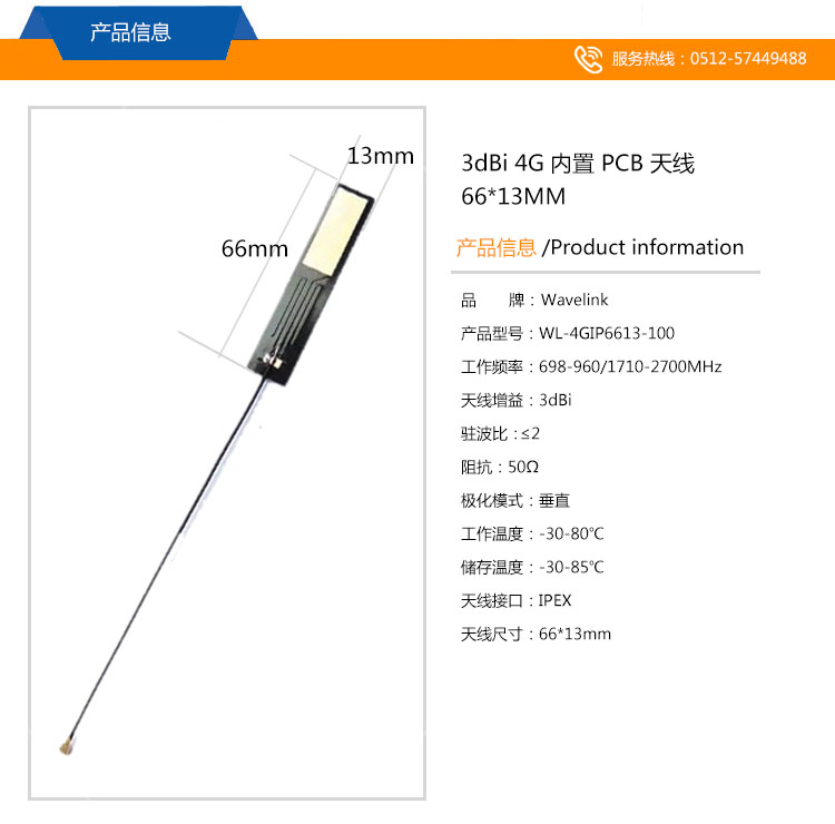 66*13mm 4G PCB內(nèi)置天線