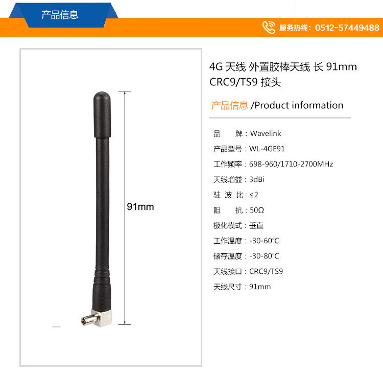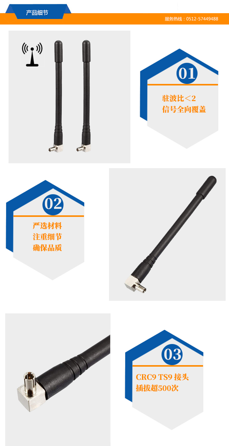 CRC9/TS9 接頭4G外置膠棒天線特點(diǎn):