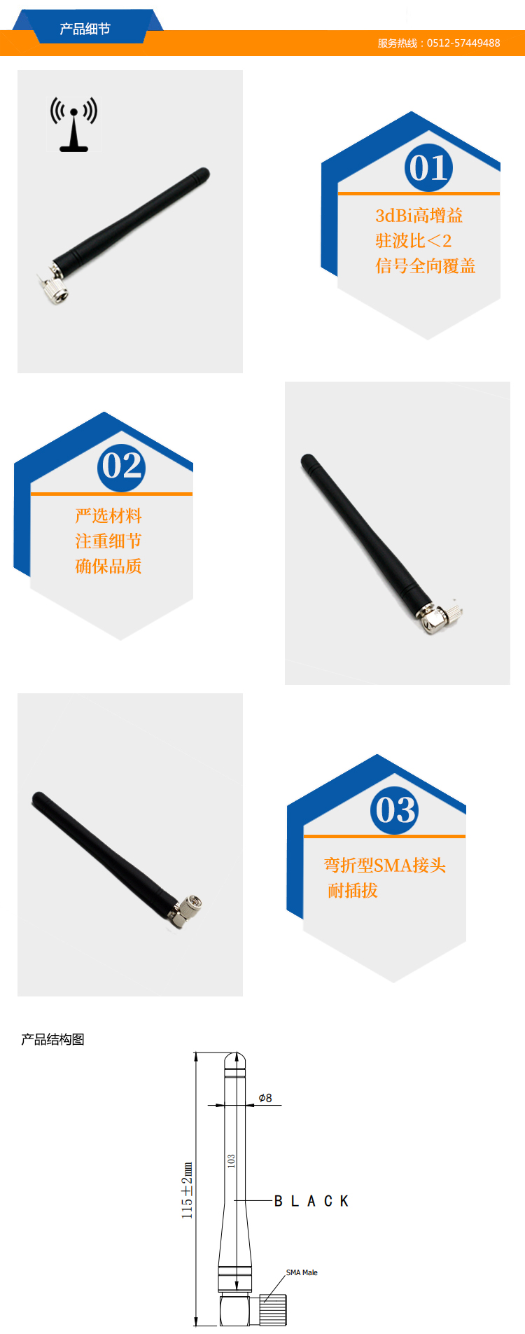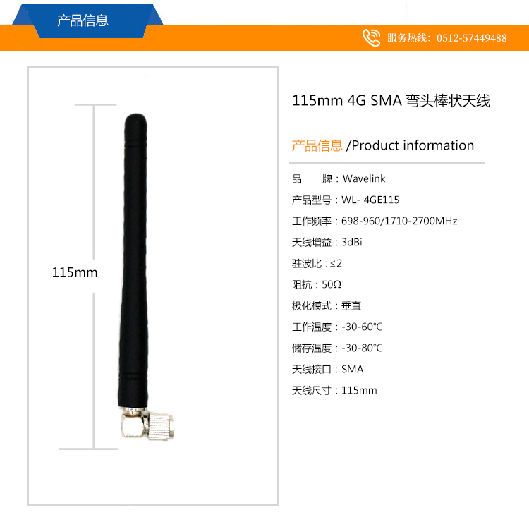 115mm 4G天線 棒狀天線 SMA彎頭天線