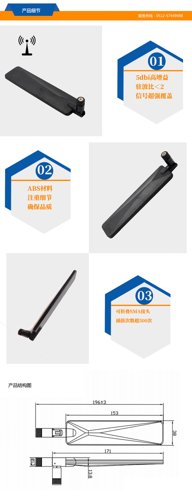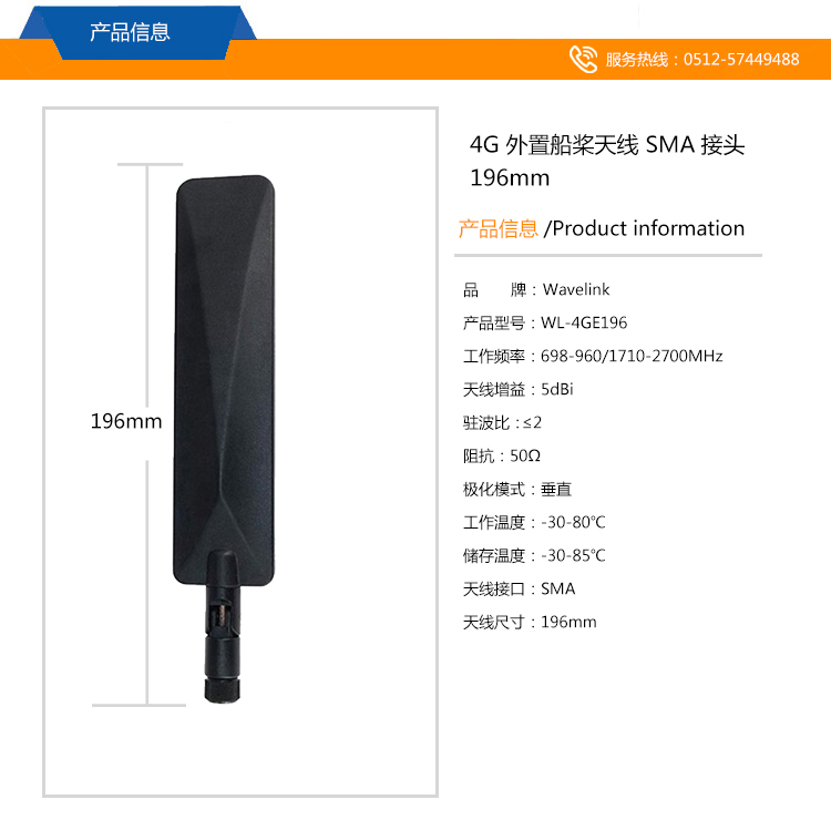 【增益(dBi)】5 dBi,7.67英寸寬帶700MHz-2700MHz全向天線,可增強微弱信號接收能力,改善遠程基站的互聯(lián)網(wǎng)速度。