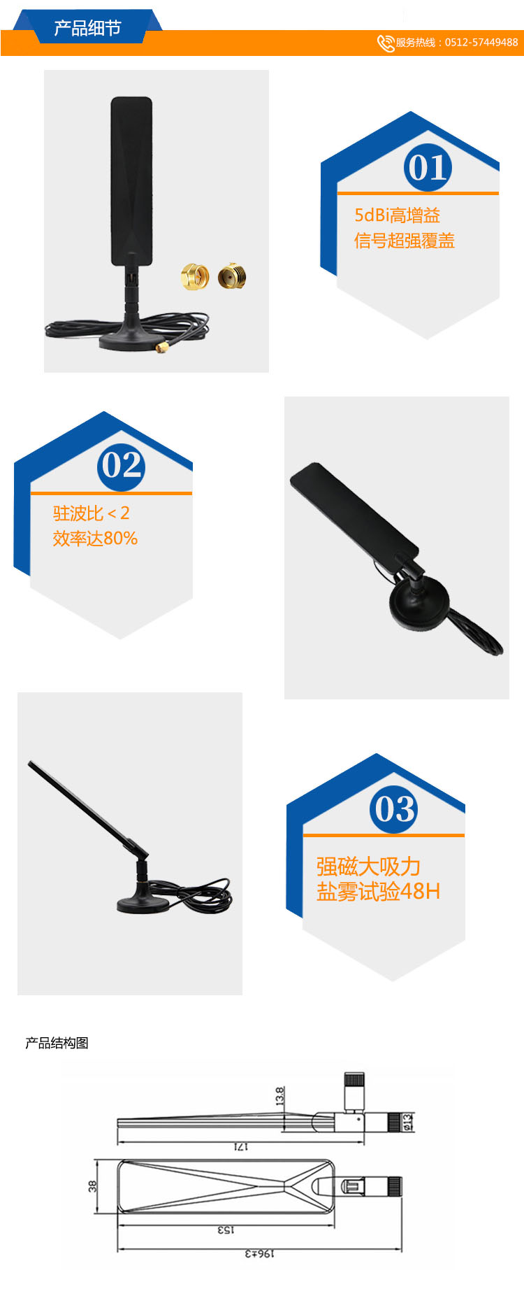 產品增益:5dBi