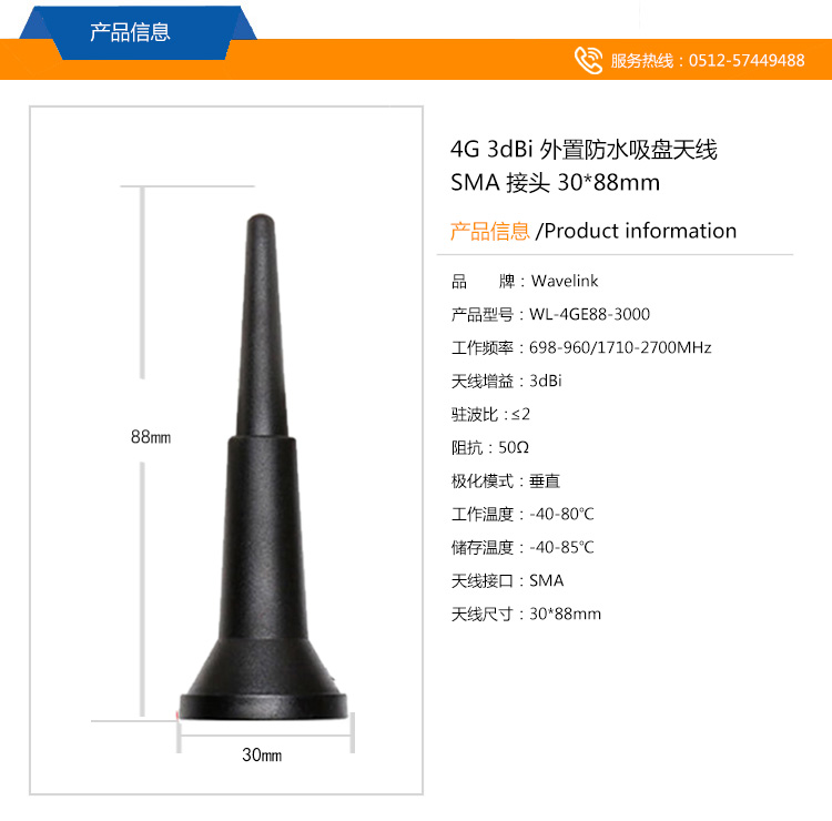 30*88mm 4G吸盤天線 外置防水天線 SMA接口