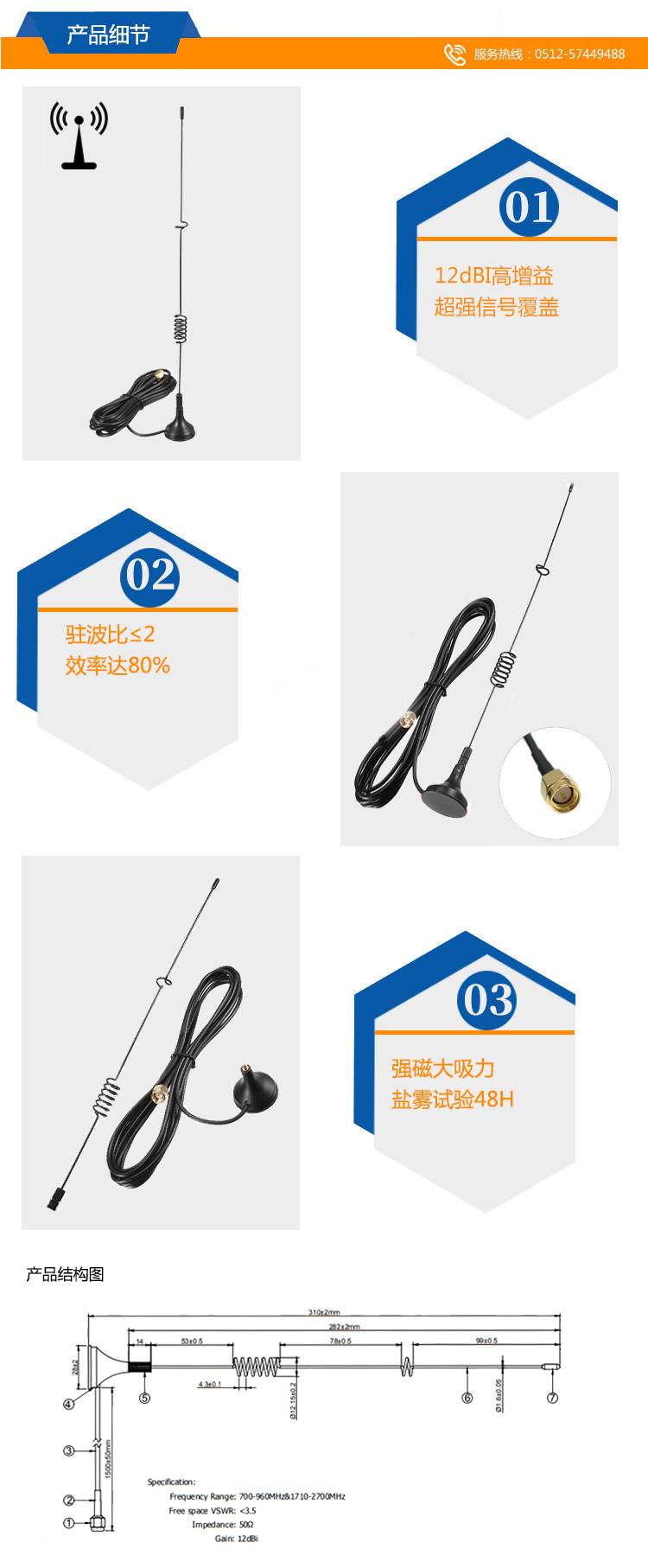 4G天線 7dBi 高增益雙振子大吸盤天線 注...