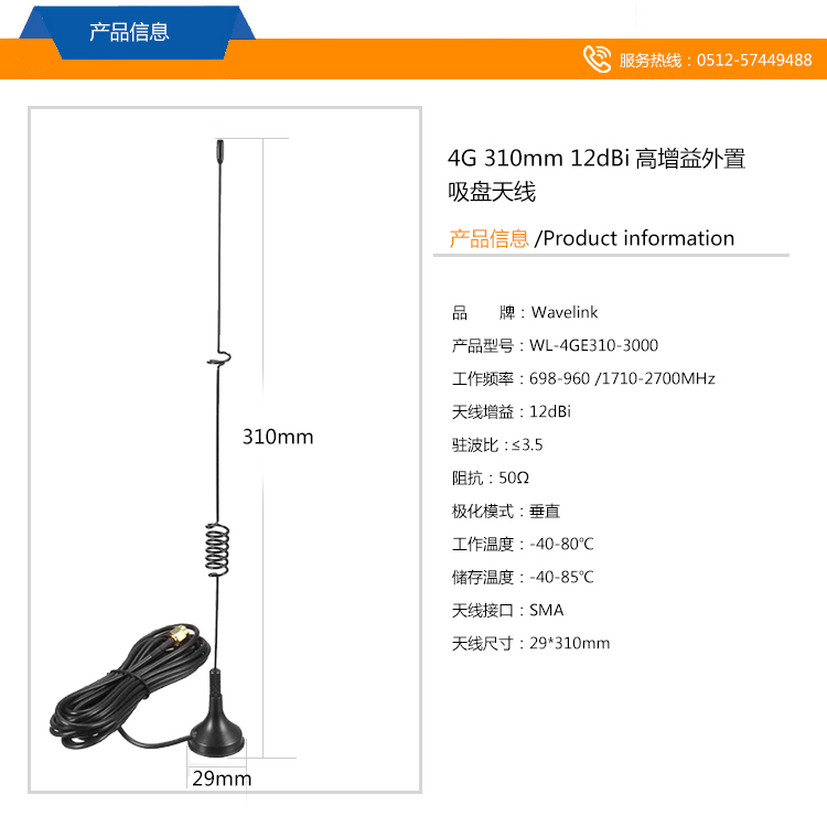 30*88mm 4G吸盤天線 外置防水天線 SMA接口