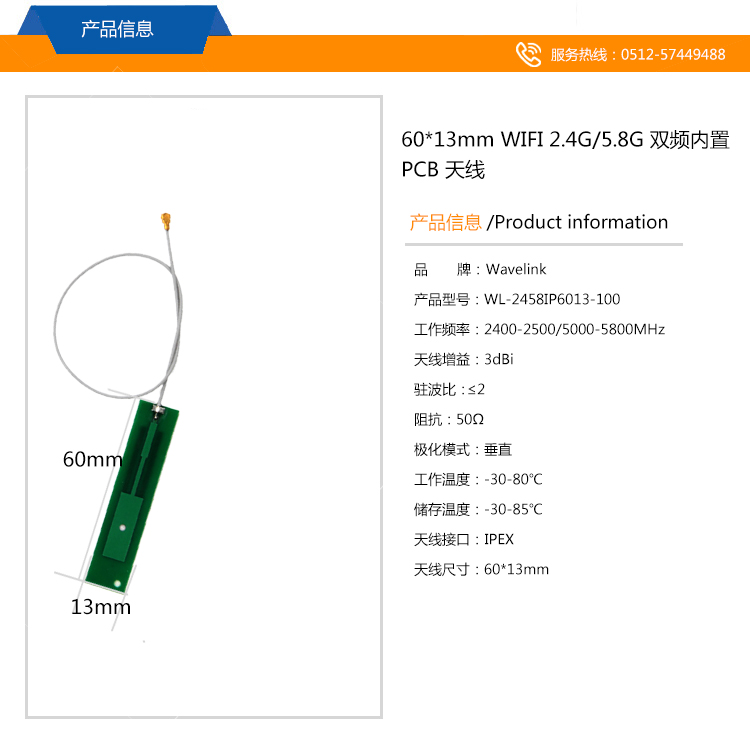 60*13MM WIFI 2.4G 內(nèi)置PCB 天線 R...