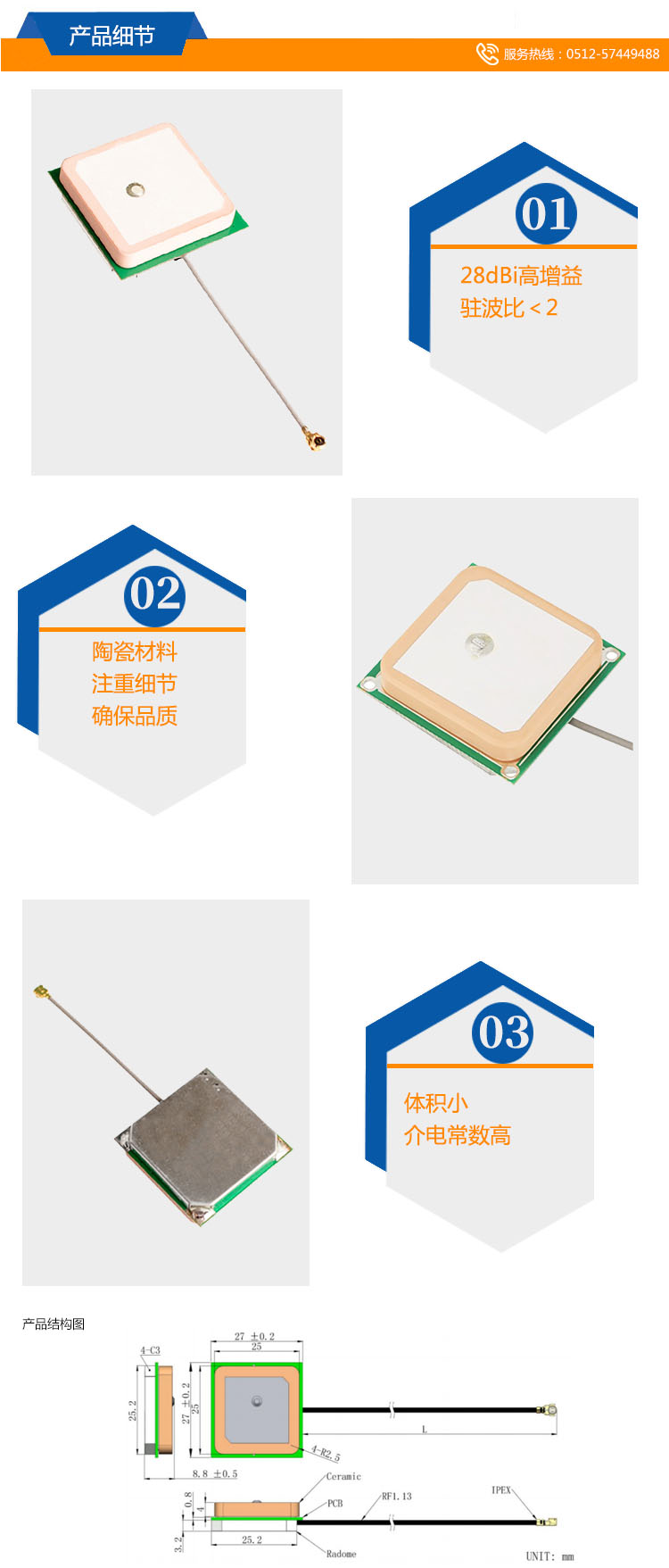 天線尺寸:25*25*4mm