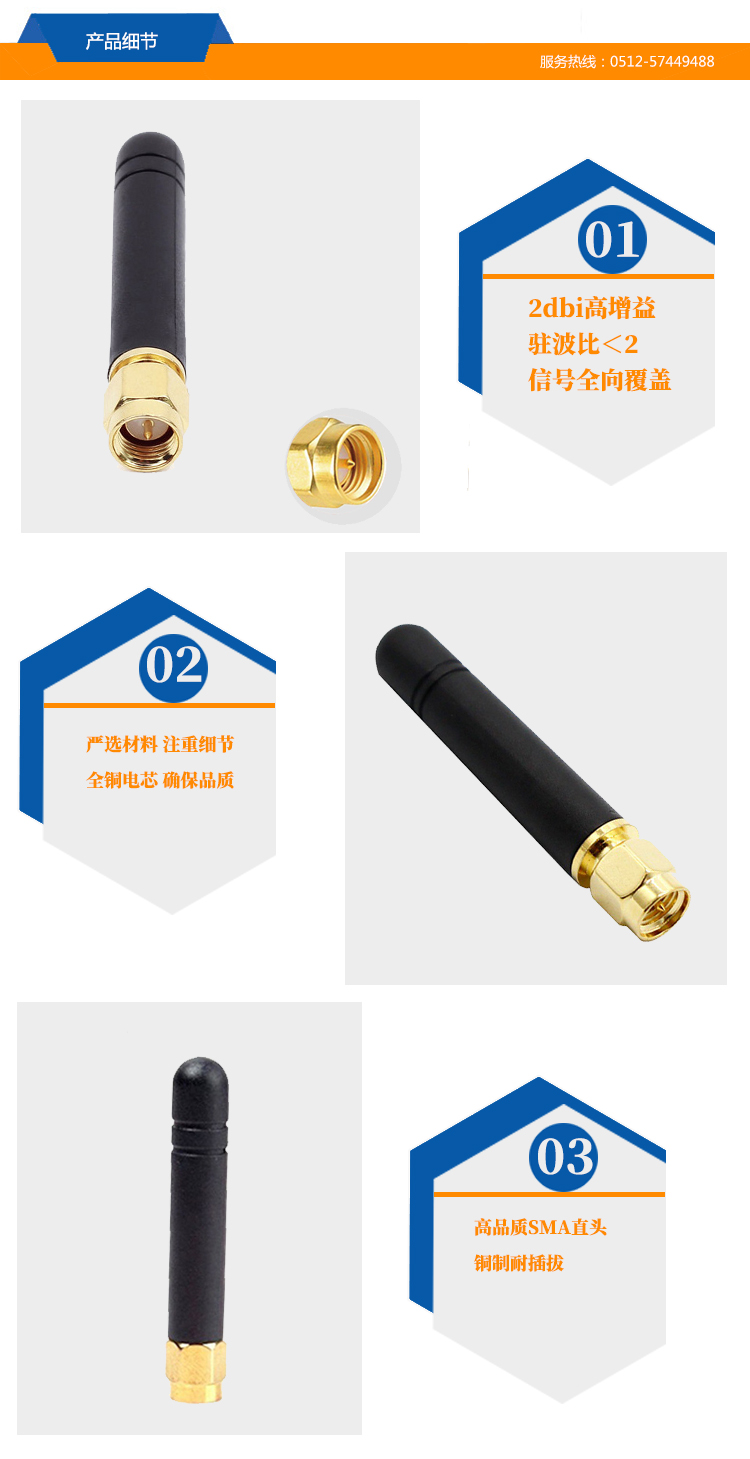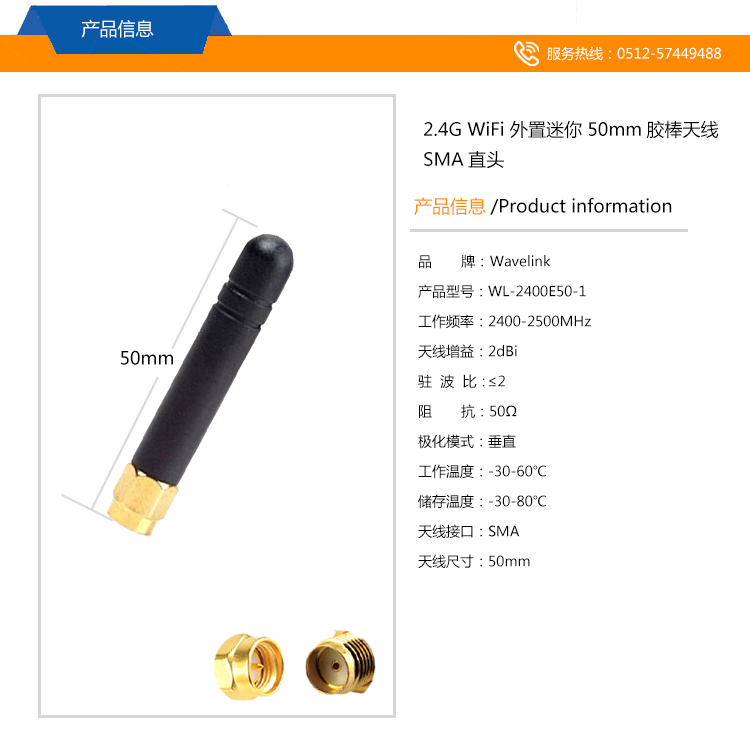2.4G WiFi 外置迷你 50mm膠棒天線SMA直頭