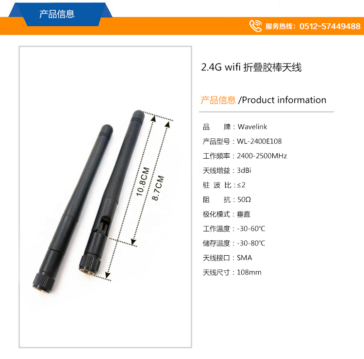 2.增益:3dBi 3.天線長度:108mm 4.連接器型號: SMA" />