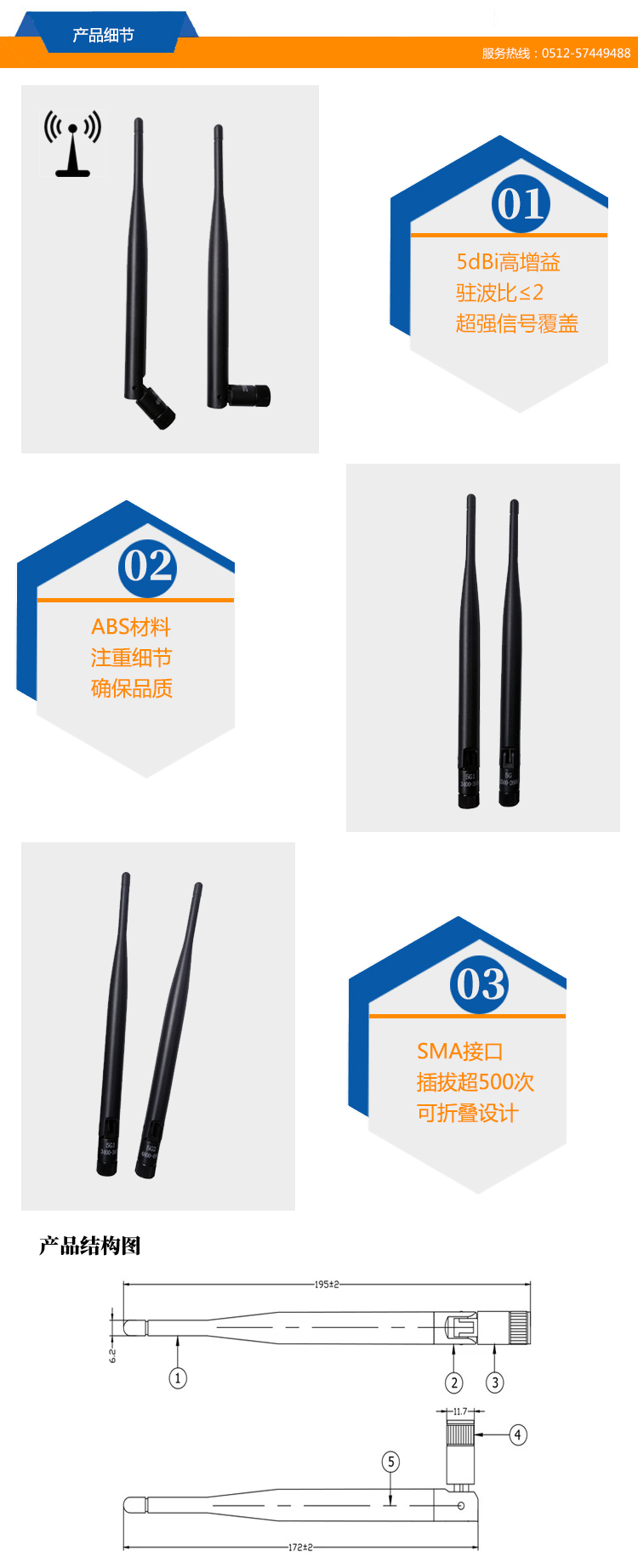 產(chǎn)品增益:5dBi