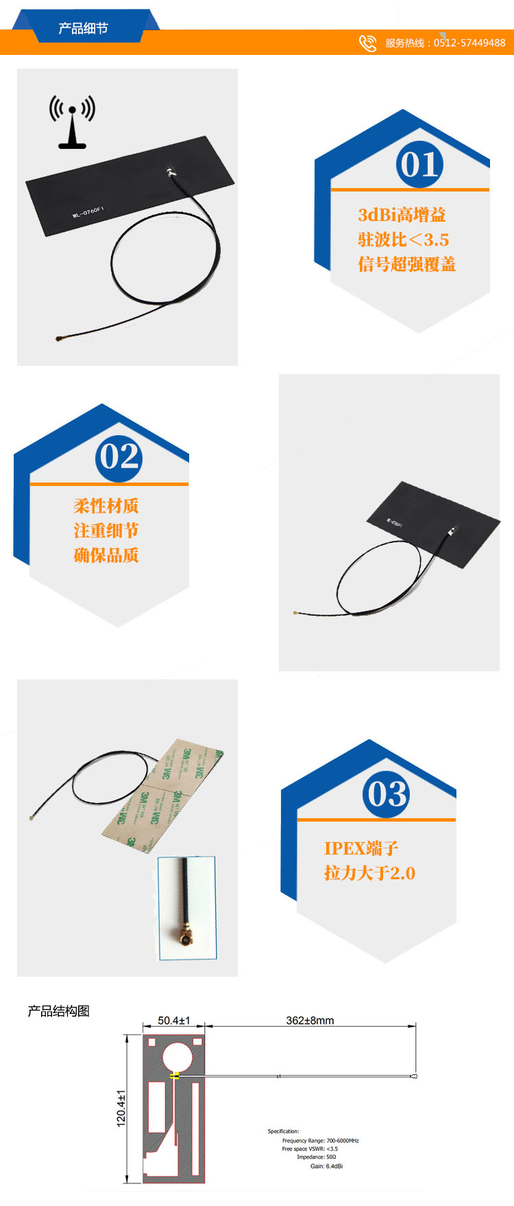 天線尺寸:50*120mm