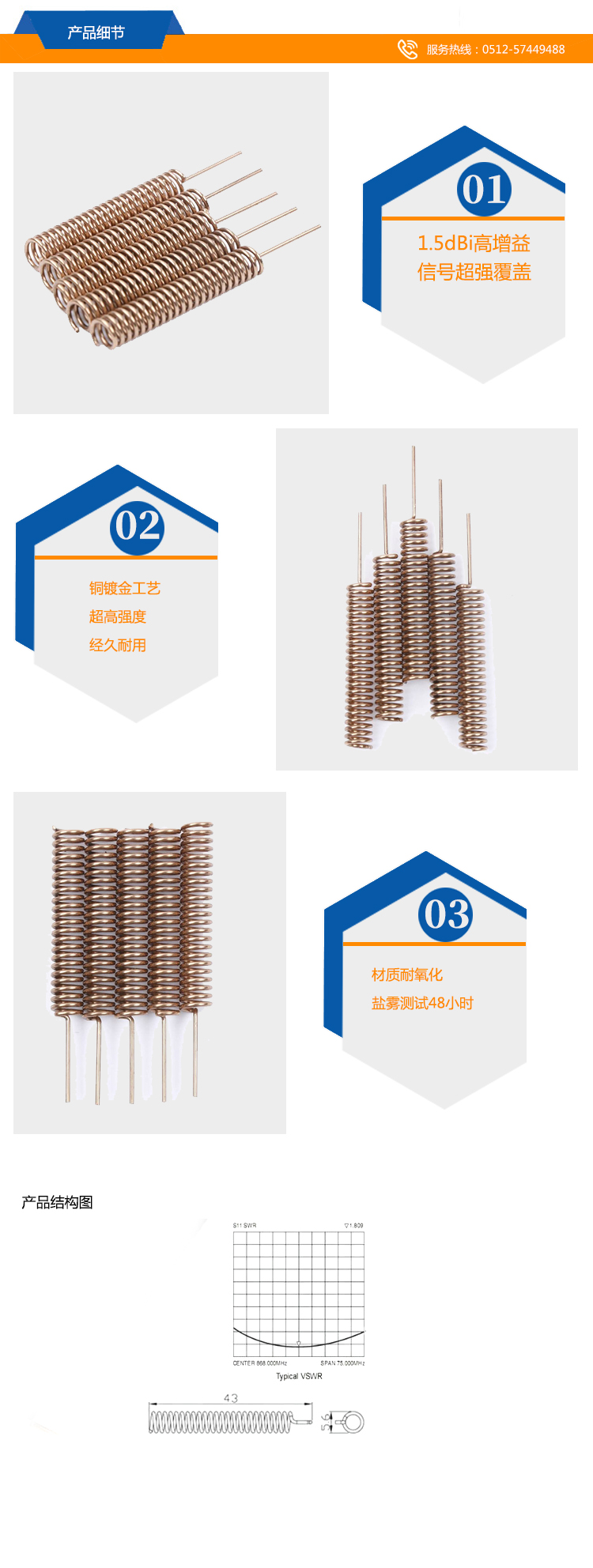 433MHz 內(nèi)置鍍銅彈簧天線 長43mm