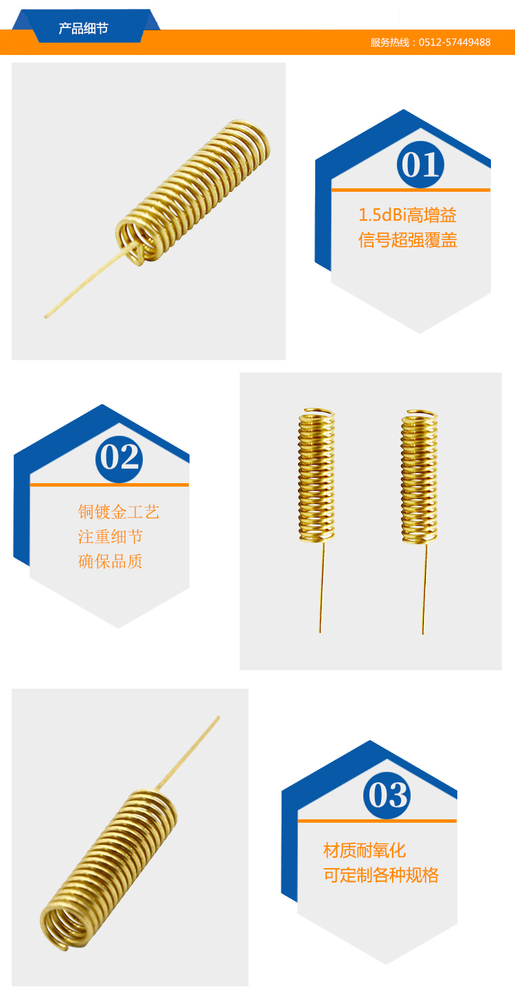 433MHz 內(nèi)置鍍銅彈簧天線 長43mm