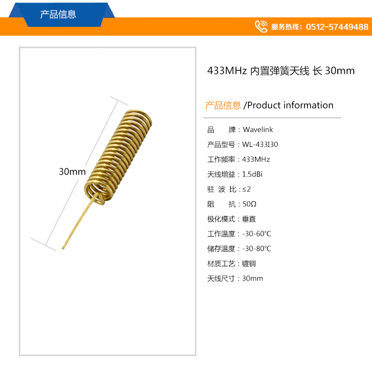 433MHz 內(nèi)置鍍銅直桿彈簧天線 長30mm