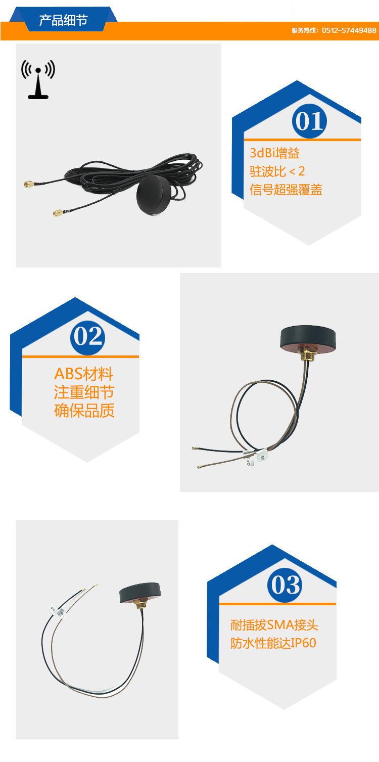 GPS/4G/WiFi 2.4G 三合一組合天線 外...