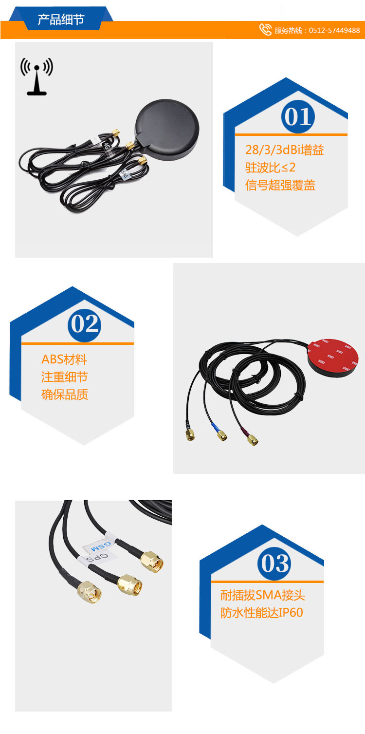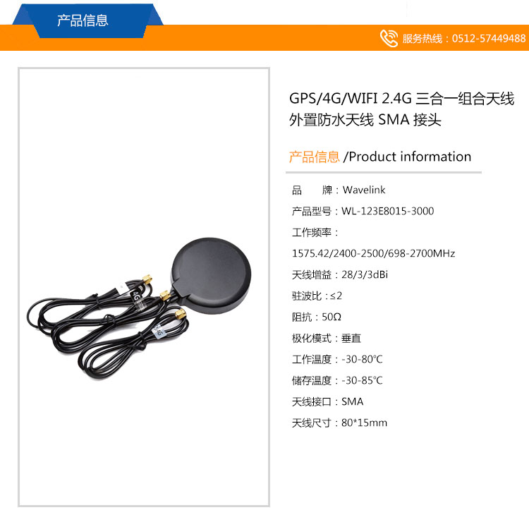 GPS/4G/WIFI 2.4G三合一組合天線外置防水天線 80*15mm SMA接頭