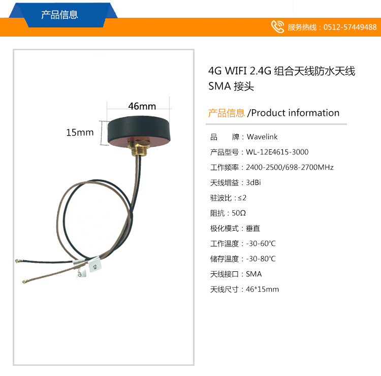4G /WiFi 2.4G 二合一組合天線平菇頭天線 46*15mm SMA接頭