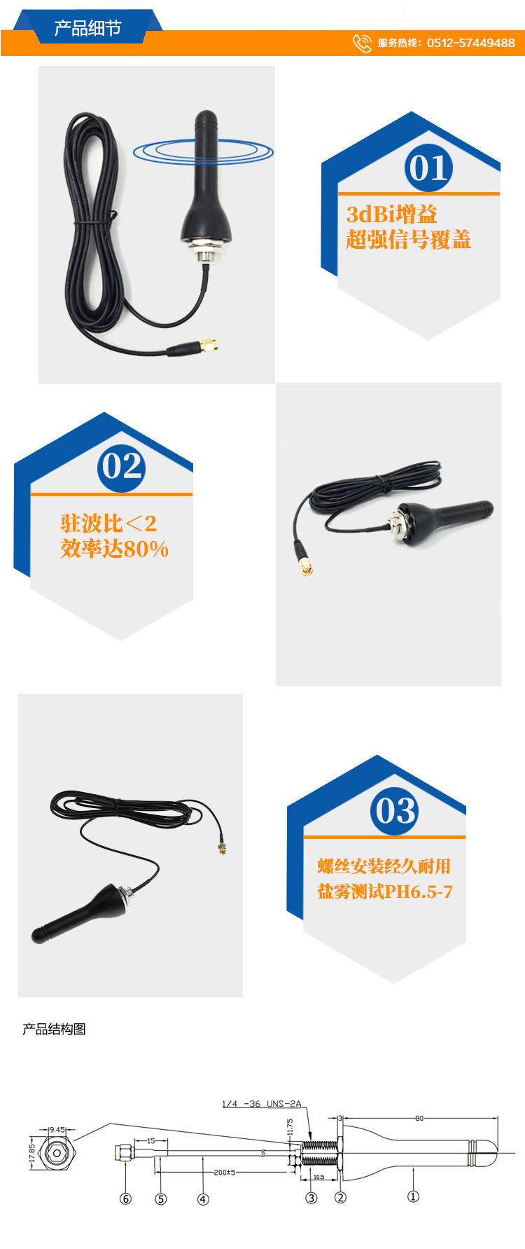 4G菇頭天線室外防水防盜天線 SMA接頭 8...