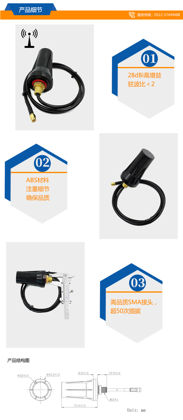 防水:防雨;特點(diǎn):固定壁裝;通孔安裝;天線安裝螺釘直徑:M12 11.76mm-11.95mm;電纜長(zhǎng)度:3米;接頭:SMA公接頭;