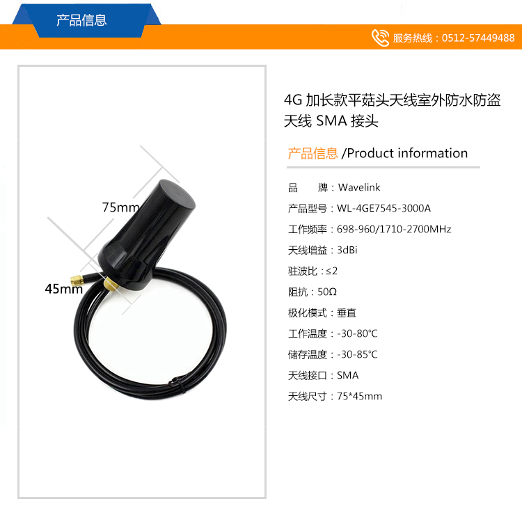 頻率范圍:698-2700 MHz;增益:5dBi;方向:全方位;