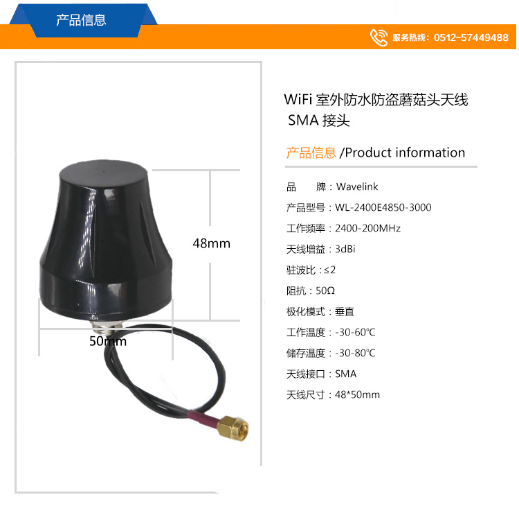 此wifi防水防盜天線承受惡劣的室外氣候-防風(fēng)雨外殼,確保在惡劣的室外環(huán)境或極端寒冷、炎熱或持續(xù)潮濕的氣候下持續(xù)運(yùn)行;堅(jiān)固的防風(fēng)雨外殼可承受惡劣的室外條件;可承受大范圍的濕度和溫度(-20°C~70°C)