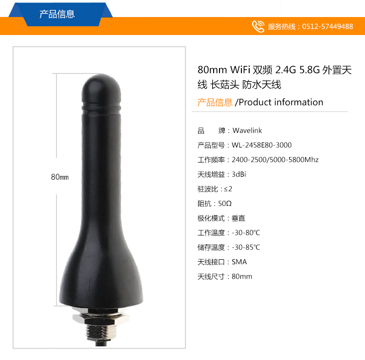 高品質(zhì)耐用–全向80mm長天線,配有3米優(yōu)質(zhì)同軸電纜和外螺紋SMA連接器