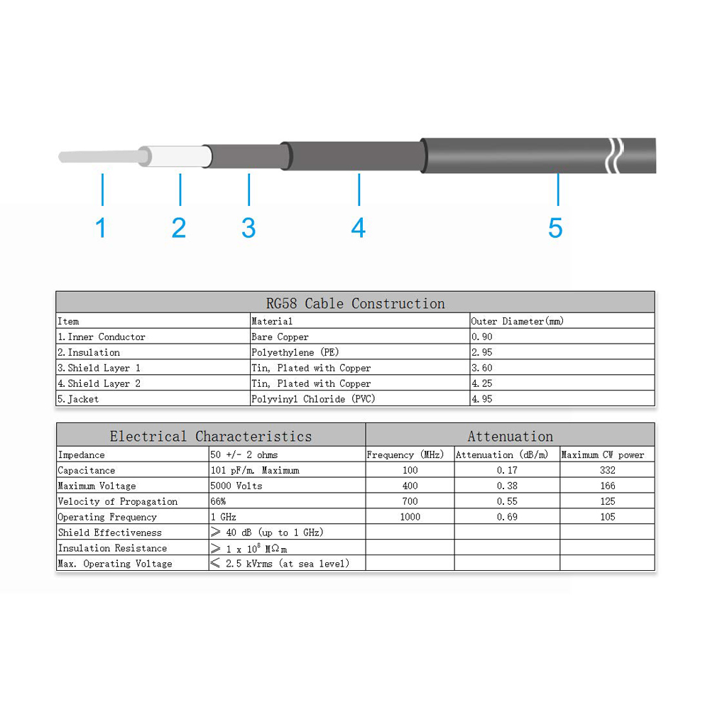 RG58,意味著比使用薄的 RG316或RG174 制作的電纜的衰減要遠。 不用擔心,尤其是在有重要價值的情況下