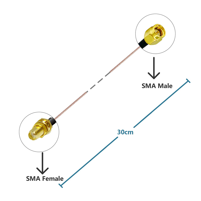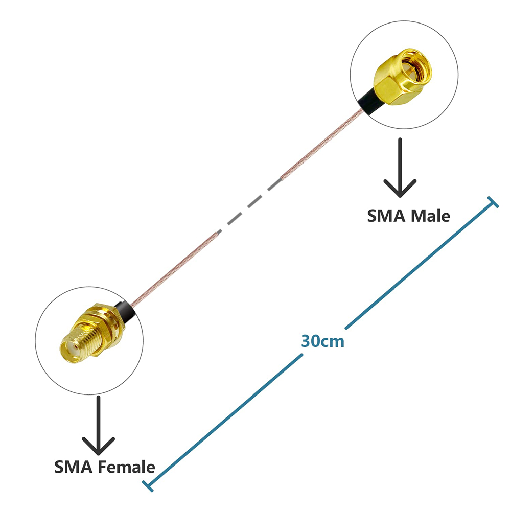 【基礎信息】電纜型號:RG-178;電纜長度:30cm;連接器1:SMA公頭;連接器2:SMA 母頭;阻抗:50歐姆
