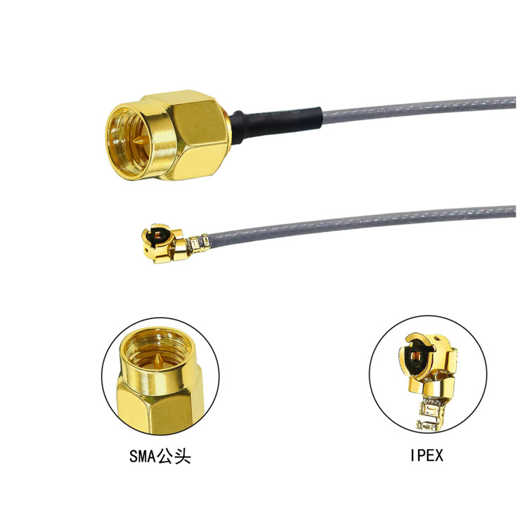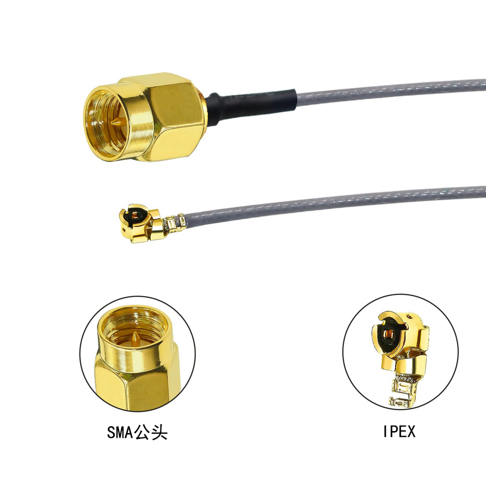 【電纜類型和詳圖】IPX陰螺紋至SMA陽螺紋同軸電纜;電纜類型:1.13mm同軸電纜;導(dǎo)體材料:純銅;電纜長度:6英寸(15cm)
