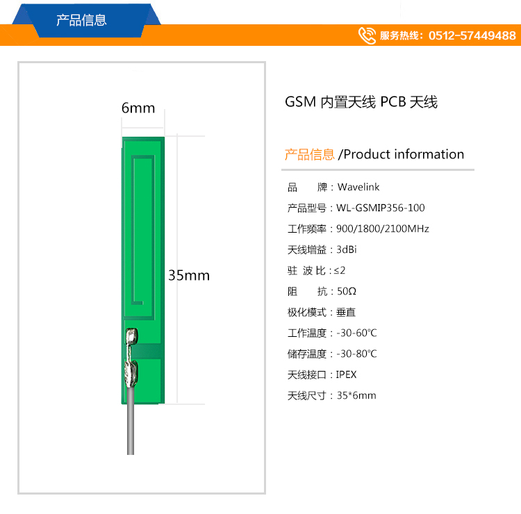 GSM天線內(nèi)置 PCB天線 3dBi高增益 35*6mm