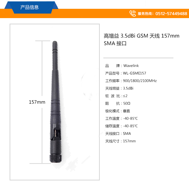 157mm GSM外置 高增益 棒狀天線 SMA接頭