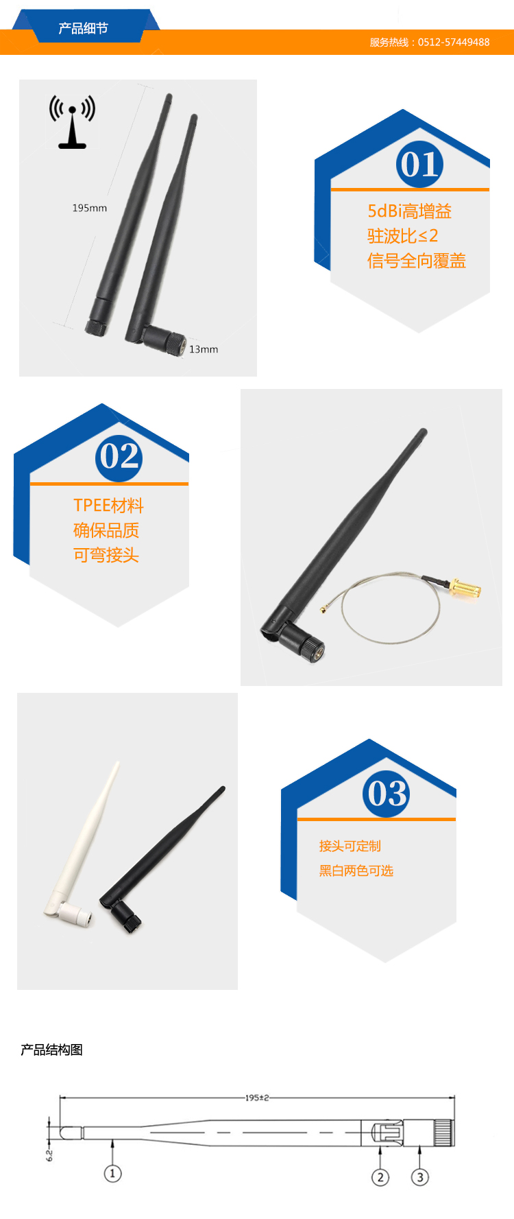 【SMA內(nèi)針】該天線接口為SMA內(nèi)螺紋內(nèi)針,耐磨、耐腐蝕、耐用,連接更穩(wěn)定。