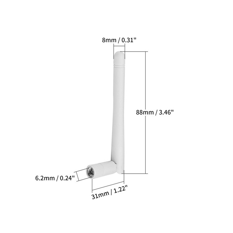 [連接器類型]:SMA連接器的天線(內(nèi)螺紋帶針腳),天線角度可調(diào),最大可傾斜90度。