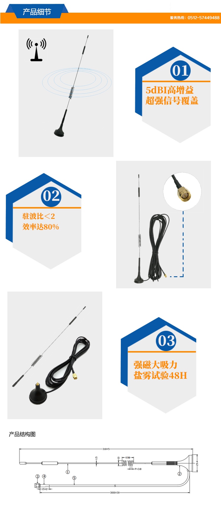 GSM天線 高增益外置大吸盤天線 SMA接頭 29* 318mm