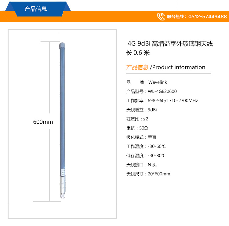 4G天線 9dBi高增益室外玻璃鋼天線 600*...