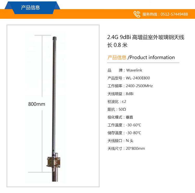 2.4G 9dBi高增益室外玻璃鋼天線 800*20mm