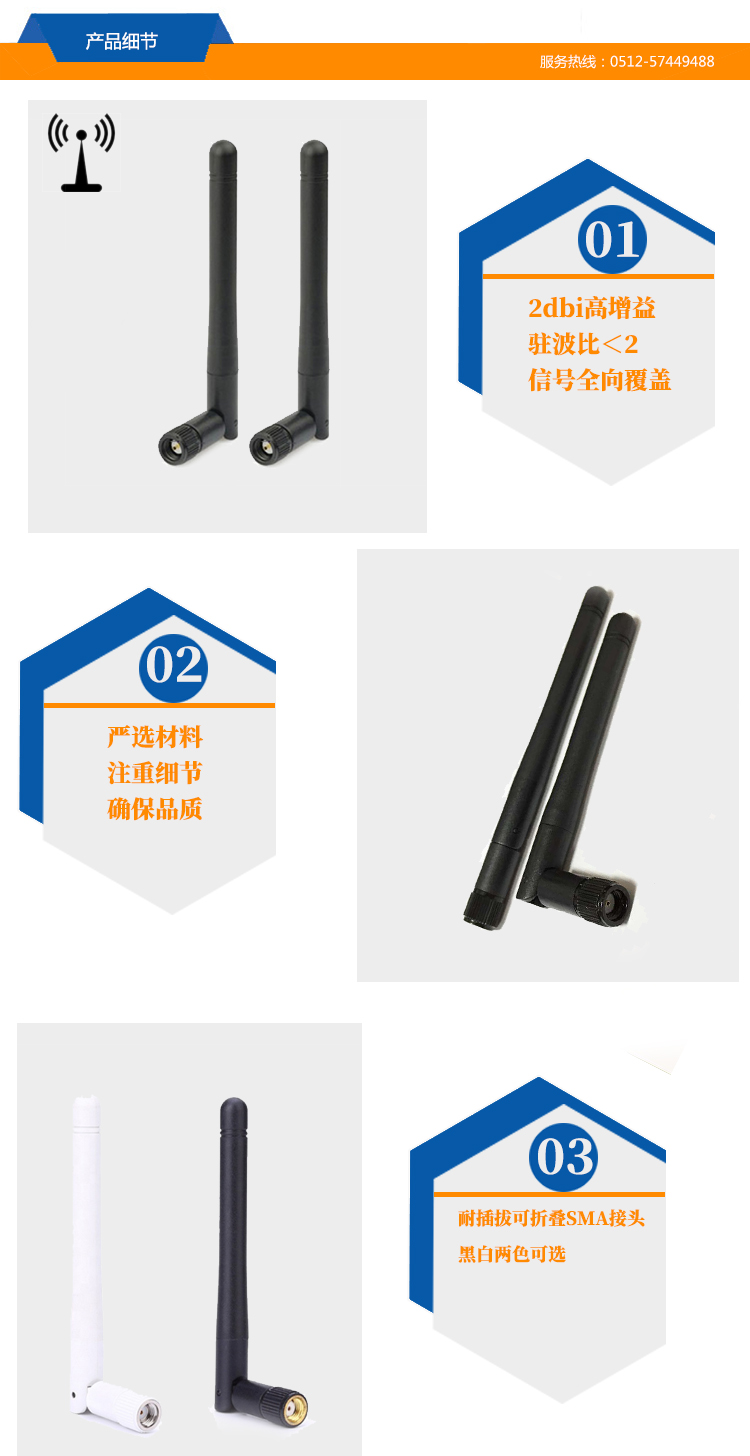 2.4/5G雙頻天線,高速傳輸更穩(wěn)定 3DBI高增益,適用于具有SMA接口的路由器,非常實用 體積小,便于攜帶和儲存,使用方便,性能好 采用優(yōu)質(zhì)材料,堅固耐用,使用壽命長 嚴格的質(zhì)量控制和質(zhì)量保證,安全系數(shù)高,使用放心