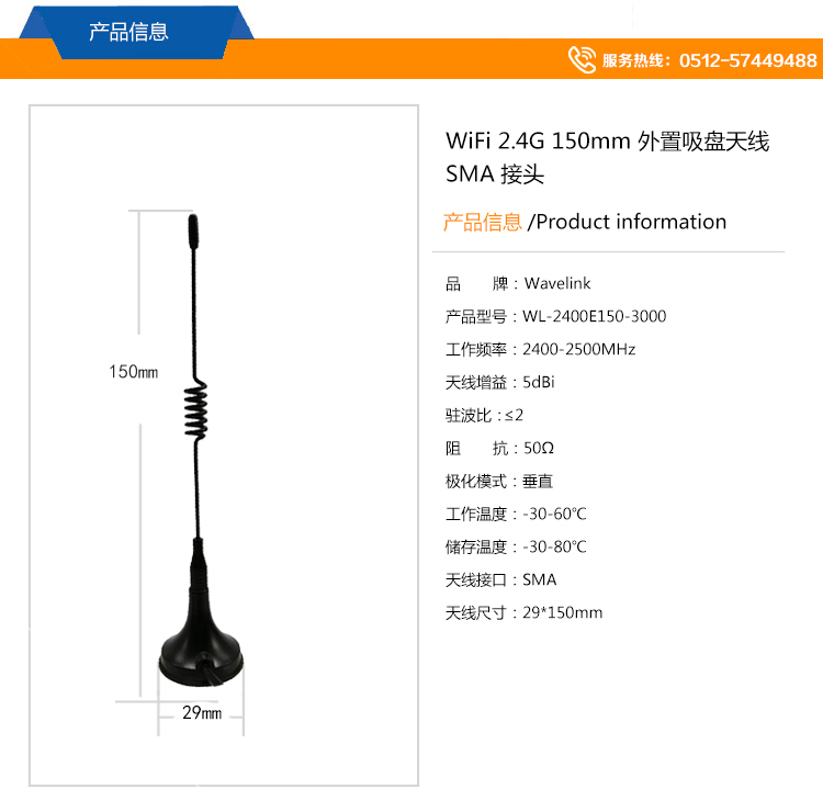 WiFi吸盤天線 2.4G天線 外置吸盤天線 SMA接頭 29*150mm