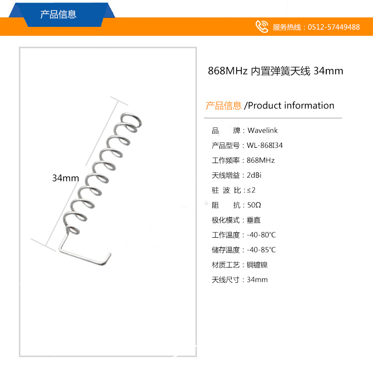 34*6mm 868MHz內(nèi)置天線 彈簧天線