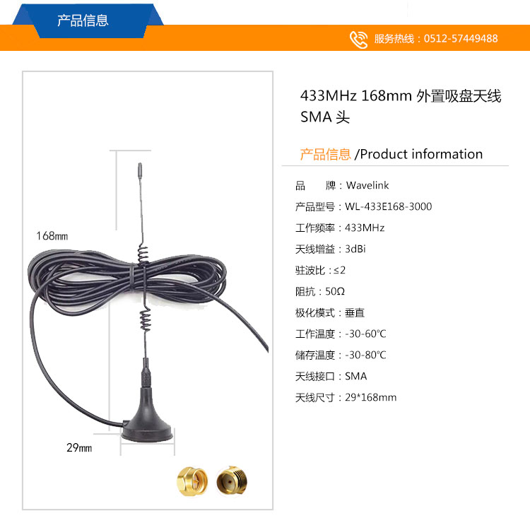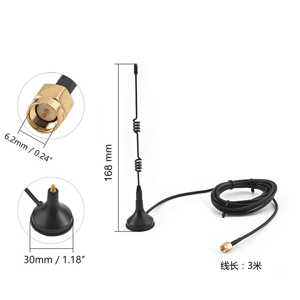 1、高品質(zhì)耐用全向168mm吸盤長天線,配有3米優(yōu)質(zhì)同軸電纜和外螺紋SMA連接器