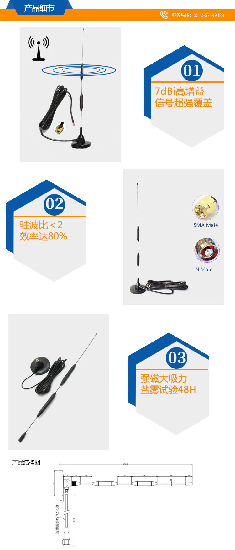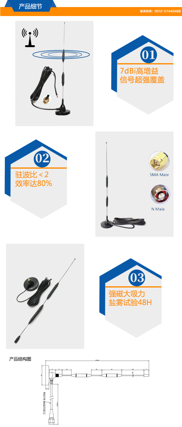 產(chǎn)品類型:SMA蜂窩天線、高增益路由器天線 頻率范圍:900/1800/2100MHz|增益:7dbi |阻抗:50Ω| VSWR≤2 |天線類型:磁性安裝|極化:垂直|全向 應(yīng)用:手機(jī)信號放大器和蜂窩中繼器/無線wifi路由器、Usb調(diào)制解調(diào)器、模塊、安全攝像頭、移動熱點、網(wǎng)關(guān)等(購買前,請確認(rèn)天線頻率和連接器是否支持您的設(shè)備。)