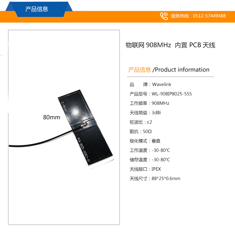 80*25mm NB-IOT天線 908MHZ 物聯(lián)網(wǎng)內(nèi)置PCB天線 IPEX接頭